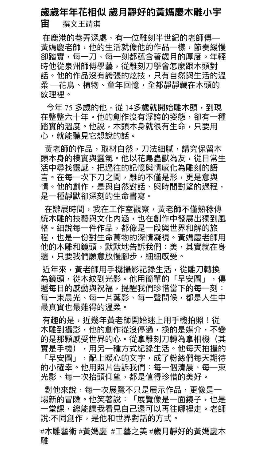 年年歲歲花相似-歲月靜好的黃媽慶木雕小宇宙