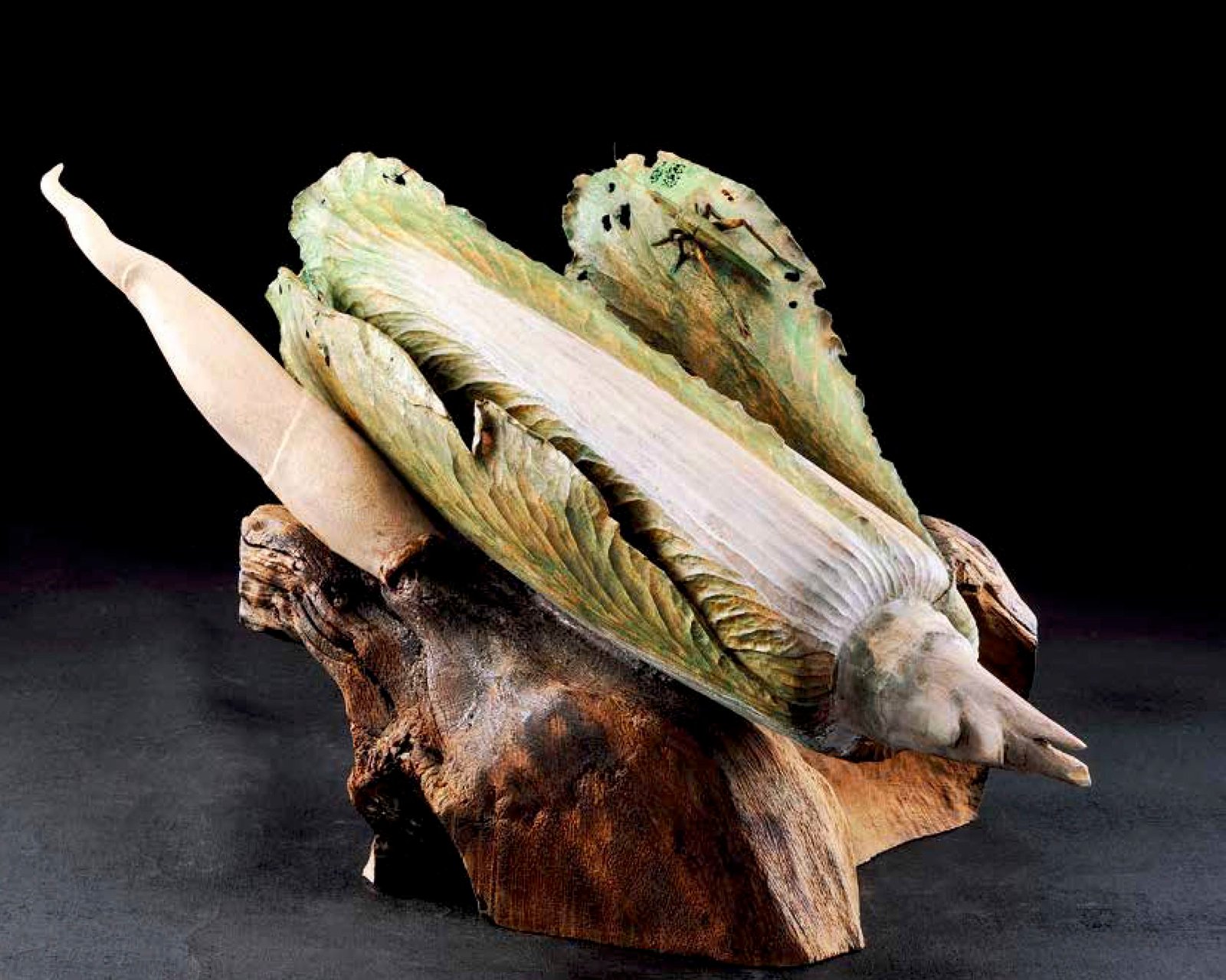 V003 黃媽慶---朱翠相依赤子心 32x18x23cm 樟木 V003 黃媽慶---朱翠相依赤子心 32x18x23cm 樟木