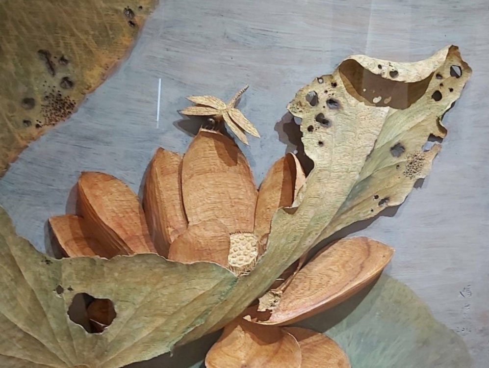 殘破荷葉雕得栩栩如生 黃媽慶木雕展傳達生命並非完美
