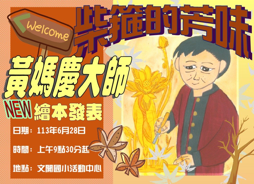 柴箍的芳味-黃媽慶大師繪本發表 Super User 本站新聞 28 六月 2024 點擊數: 895 列印 Email 日期:113年6月28日 時間:上午9點30分 地點:文開國小活動中心 tweet
